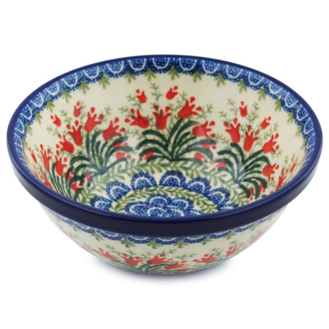 Polish Pottery Bowl - 6.5" - Crimson Bells