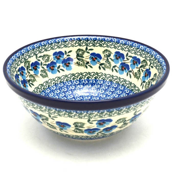 Polish Pottery Bowl - 6.5" - Blue Pansies